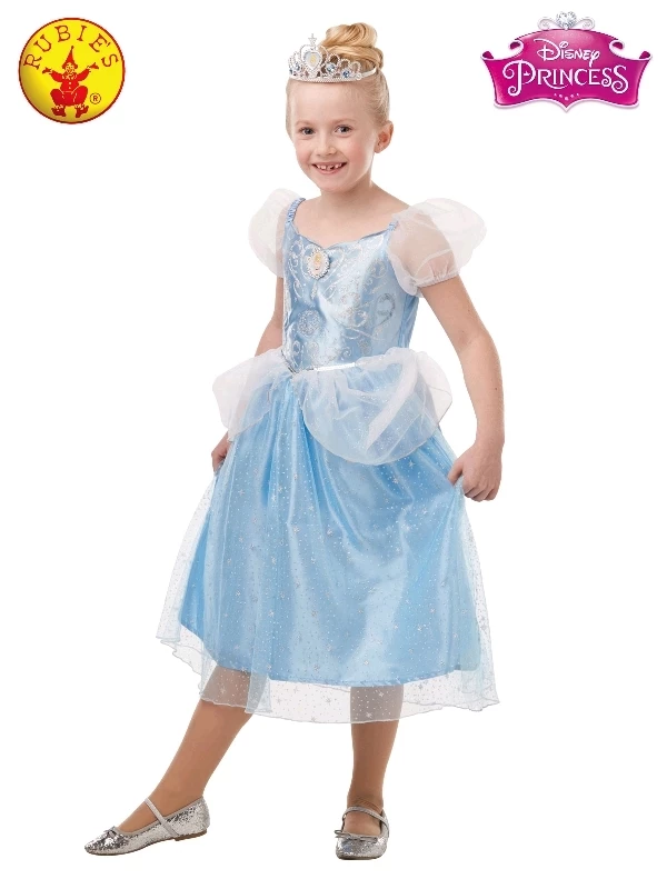 - Satin dress with ornate silver and blue bodice featuring character art motif at centre and elastic shoulder straps. Puff sleeves are sheer at shoulders