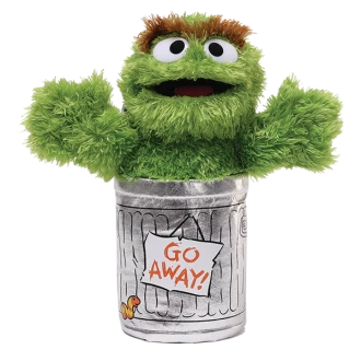 SCRAM! Sesame Street’s resident grouch, Oscar, likes collecting junk, standing in line, arguing and rainy days.
