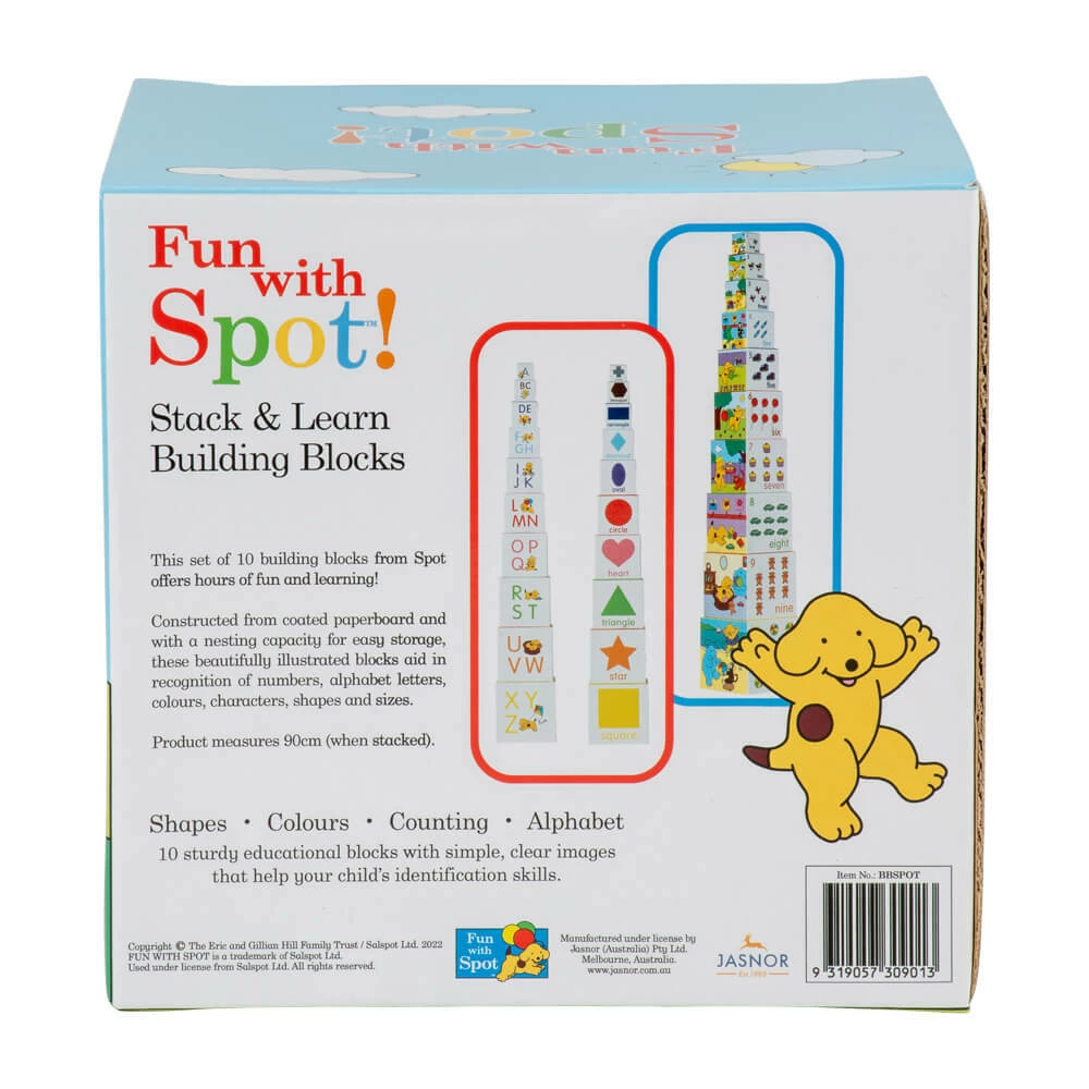 Featuring your child’s favourite dog, Spot, these Stack & Learn Building Blocks will offer hours of educational fun assisting with the development of motor and problem solving skills as well as recognition of numbers, alphabet letters, colours, characters, shapes and sizes. Includes 10 sturdy building blocks and stands at 90cm tall when stacked.