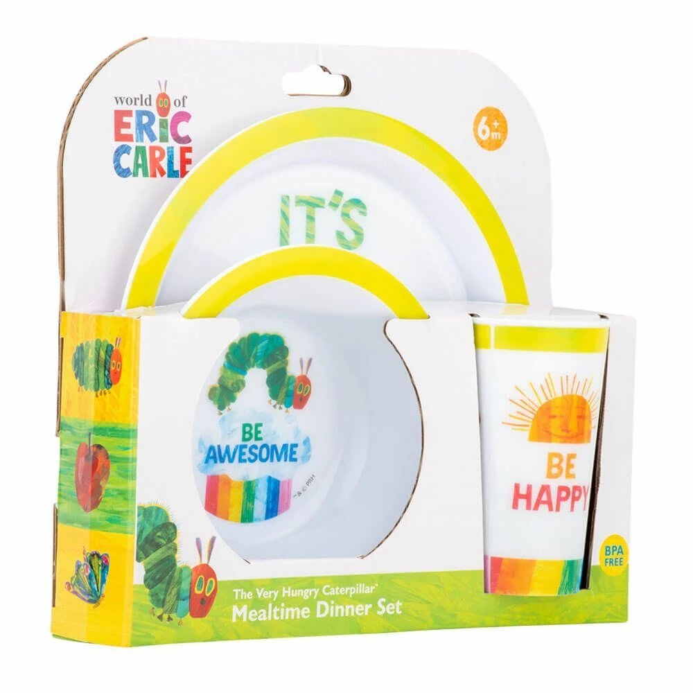 Make mealtimes fun with this adorable 3-piece dinner set from The World Of Eric Carle, which includes a plate, bowl and tumbler. Featuring a bright and colourful design inspired by the iconic Very Hungry Caterpillar, little ones will want to eat up so they can see which of their favourite characters is waiting underneath! All items are made from 100% BPA-free polypropylene plastic, which is shatter-proof, non-toxic and ultimately safer for children.